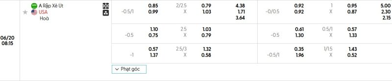 Bảng Tỷ lệ kèo bóng đá Ả Rập Xê Út vs Mỹ