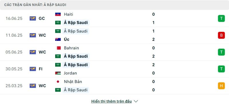 Thống kê phong độ gần đây Ả Rập Xê Út vs Mỹ