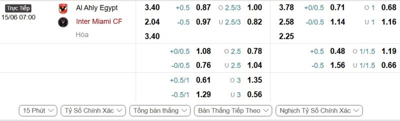 Bảng Tỷ lệ kèo bóng đá Al Ahly FC vs Inter Miami CF