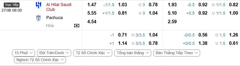Bảng Tỷ lệ kèo bóng đá Al-Hilal vs Pachuca