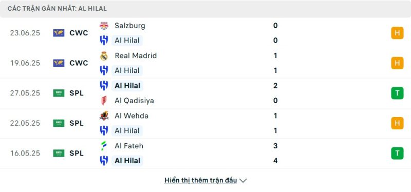 Thống kê phong độ gần đây Al-Hilal vs Pachuca