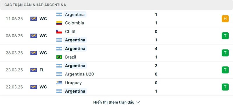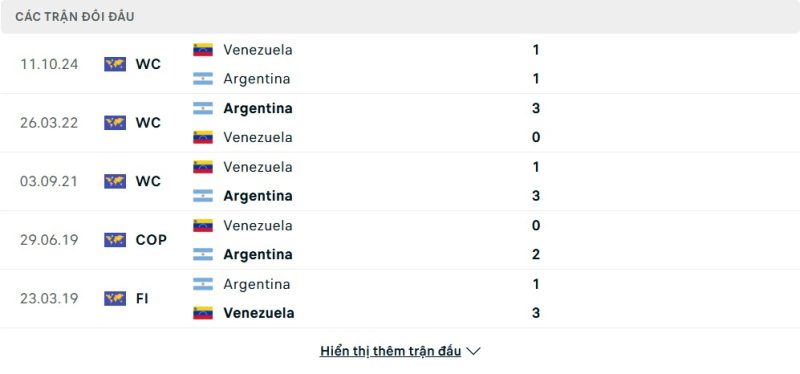 Thống kê phong độ gần đây Argentina vs Venezuela