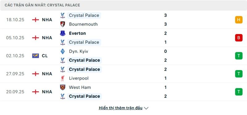 Bên kia chiến tuyến, Crystal Palace cũng đang có một khởi đầu mùa giải không hề tệ. “Đại bàng” hiện đang đứng ở vị trí thứ 8 trên bảng xếp hạng với 13 điểm sau 8 trận, chỉ chịu duy nhất 1 thất bại. Phong độ gần đây của họ khá ổn định, dù vừa có 2 trận không thắng liên tiếp ở Premier League (thua Everton 1-2 và hòa Bournemouth 3-3). Tuy nhiên, trước đó họ đã có những chiến thắng ấn tượng như 2-1 trước Liverpool hay 2-1 trước West Ham. Đoàn quân của Oliver Glasner cho thấy họ là một tập thể rất khó bị đánh bại ở mùa giải này.