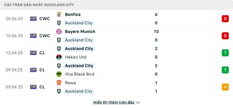 - Phong độ của Auckland City