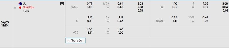 Bảng Tỷ lệ kèo bóng đá Australia vs Nhật Bản