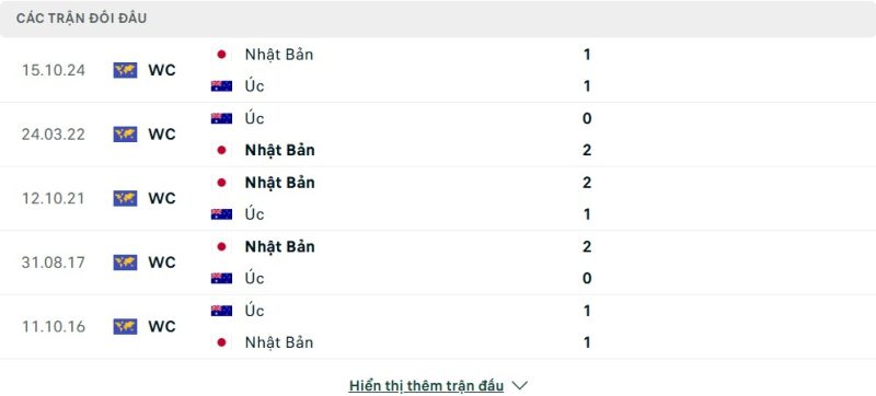 Thống kê phong độ gần đây Australia vs Nhật Bản