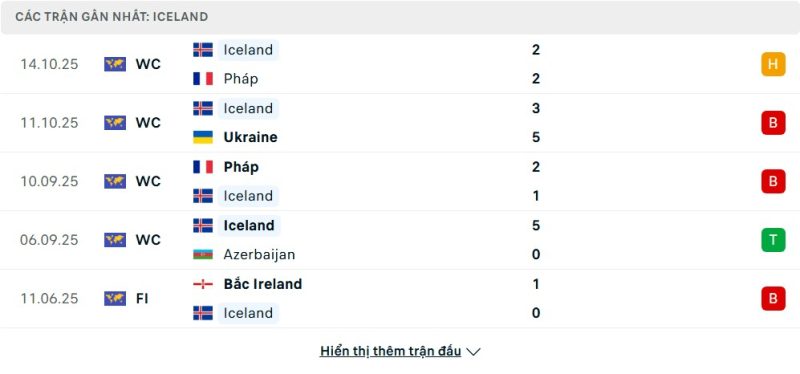 5 trận gần nhất của Iceland: D-L-L-W-L