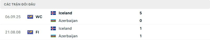 Thành tích đối đầu của Azerbaijan vs Iceland