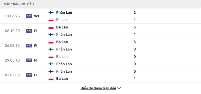 Thành tích đối đầu của Ba Lan vs Phần Lan