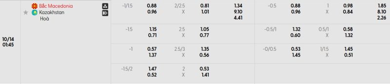 Bảng Tỷ lệ kèo bóng đá Bắc Macedonia vs Kazakhstan