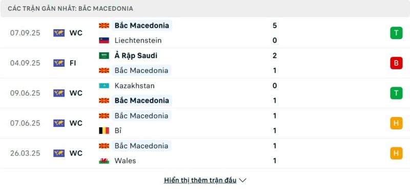 5 trận gần nhất của Bắc Macedonia: W-L-W-D-D