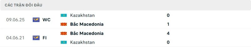 Thành tích đối đầu của Bắc Macedonia vs Kazakhstan