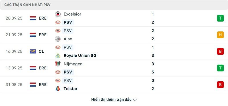 - Phong độ của PSV Eindhoven