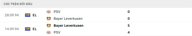 Thành tích đối đầu của Bayer Leverkusen vs PSV Eindhoven