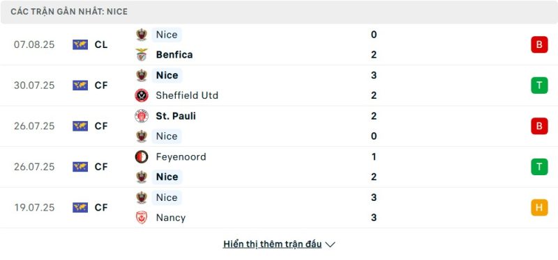 Bên kia chiến tuyến, Nice bước vào trận đấu này sau loạt trận giao hữu mùa hè khá sôi động, trong đó có những chiến thắng trước Cercle Brugge, Aubagne và Feyenoord. Tuy nhiên, đội bóng này cũng để lộ điểm yếu ở hàng thủ khi để thủng lưới trước Nancy và St. Pauli. Ở lượt đi Champions League, Nice thất bại 0-2 trên sân nhà, khiến cơ hội đi tiếp bị thu hẹp đáng kể. Dù vậy, họ vẫn sở hữu hàng công nhanh nhẹn và khả năng tạo đột biến, điều có thể gây khó khăn cho đối phương nếu tận dụng tốt.