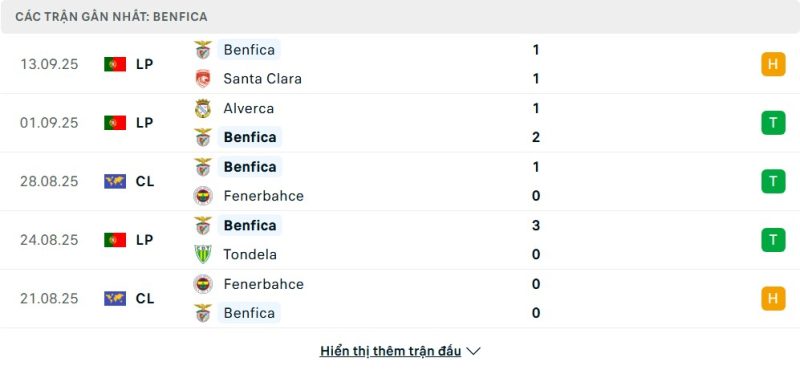 Thống kê phong độ gần đây Benfica vs Qarabağ