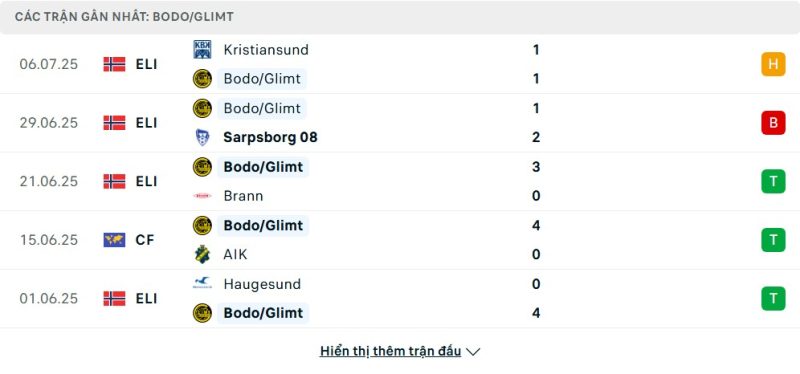 Thống kê phong độ gần đây Bodø/Glimt vs Sandefjord