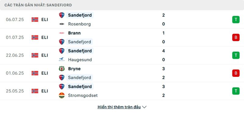 5 trận gần nhất của Sandefjord: W-L-W-L-W