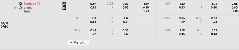 Bảng Tỷ lệ kèo bóng đá Botafogo vs Vitória