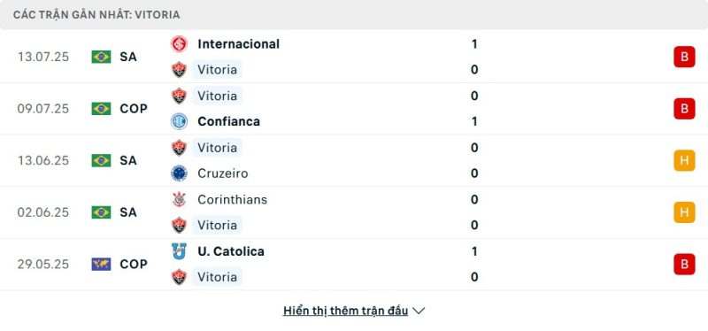 Bên kia chiến tuyến, Vitória vẫn đang chìm sâu trong khủng hoảng. Đội bóng này đã để thua 3 trận liên tiếp ở Serie A mà không ghi được bàn nào. Gần nhất, họ thất bại 0-1 trước Internacional, tiếp tục cho thấy vấn đề lớn trong việc duy trì sự tập trung. Các trận trước đó cũng không khả quan hơn. Khả năng tấn công yếu kém đang khiến họ tụt dần về nhóm cuối bảng và đối mặt với nguy cơ rớt hạng nếu không sớm cải thiện.