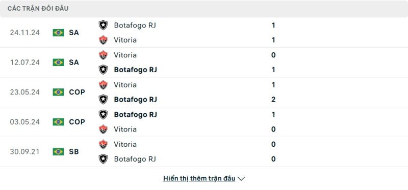 Thống kê phong độ gần đây Botafogo vs Vitória