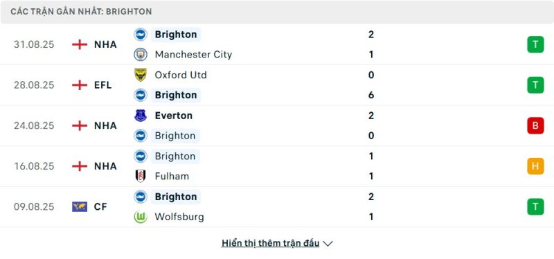 - Phong độ của Brighton & Hove Albion