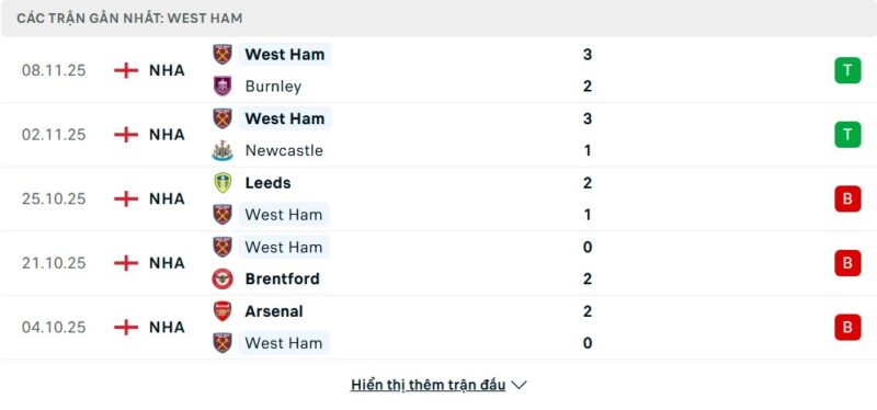 - Phong độ của West Ham United