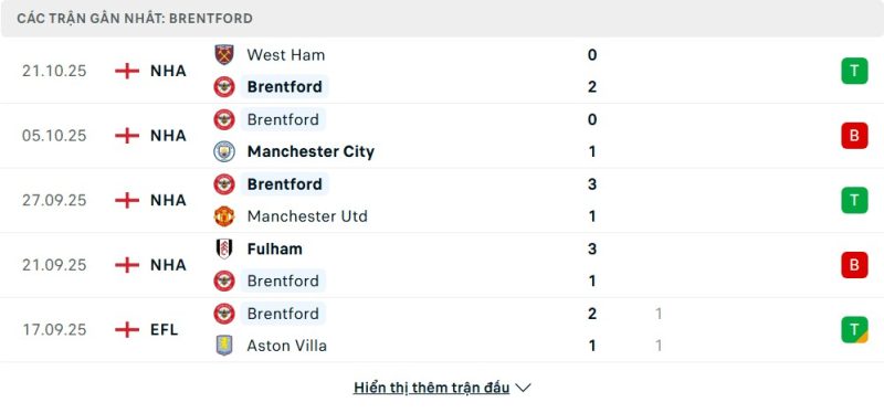 - Phong độ của Brentford