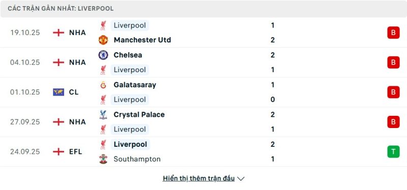 Bên kia chiến tuyến, Liverpool lại đang chìm trong một cuộc khủng hoảng mini. Dù vẫn đang đứng ở vị trí thứ 3 trên bảng xếp hạng với 15 điểm, “Lữ đoàn đỏ” đã không biết mùi chiến thắng trong 4 trận gần nhất trên mọi đấu trường. Đáng báo động hơn, họ đã thua cả 3 vòng đấu gần nhất tại Premier League, lần lượt trước Crystal Palace 1-2, Chelsea 1-2 và Man Utd 1-2. Chuỗi trận thảm họa này còn bị nối dài bởi thất bại 0-1 trước Galatasaray tại UEFA Champions League. Thầy trò Arne Slot rõ ràng đang chịu áp lực cực lớn.