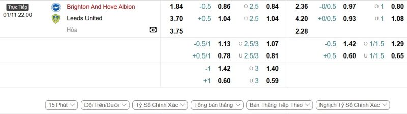 Bảng Tỷ lệ kèo bóng đá Brighton & Hove Albion vs Leeds United
