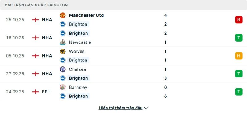 Thống kê phong độ gần đây Brighton & Hove Albion vs Leeds United