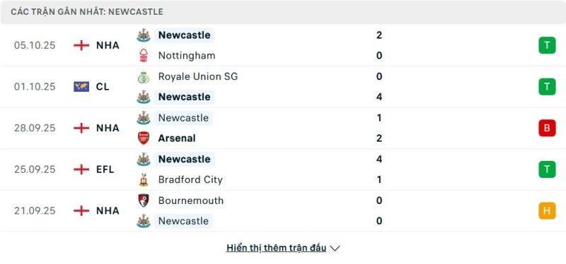 5 trận gần nhất của Newcastle United: W-W-L-W-D
