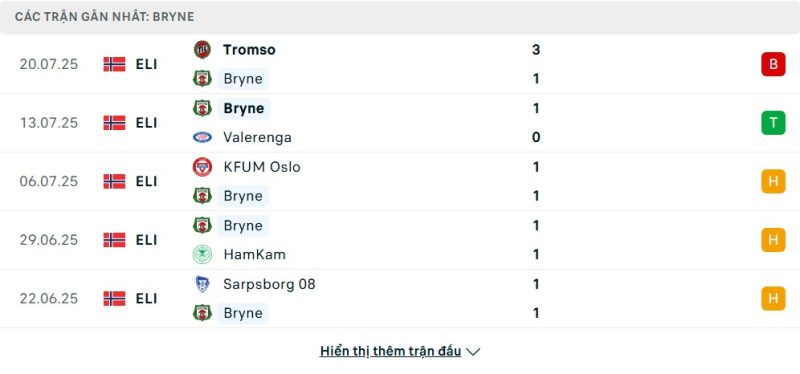 Bryne vẫn đang cho thấy mình là một tập thể khó chịu dù chỉ đứng hạng 12 trên bảng xếp hạng. Trong 5 vòng gần nhất, họ bất bại 4 trận liên tiếp trước khi để thua Tromso, đội đang xếp thứ 2. Bryne đã cầm hòa các đối thủ khá cứng như HamKam, KFUM Oslo và Sarpsborg 08, đồng thời giành chiến thắng trước Valerenga. Thành tích này cho thấy đội bóng đang duy trì được sự ổn định tương đối tốt dù vẫn còn thiếu sắc bén để bứt phá khỏi khu vực giữa bảng.