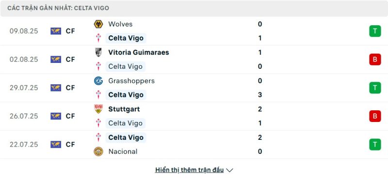 Celta Vigo bước vào mùa giải mới với sự chuẩn bị tương đối ổn định. Trong loạt trận giao hữu, họ đánh bại Wolves và Grasshoppers thuyết phục, đồng thời giữ sạch lưới. Dù vậy, đội bóng này cũng để lộ hạn chế khi nhận những thất bại trước Vitória, Stuttgart và Braga. Ở LaLiga mùa trước, Celta đã có những chiến thắng quan trọng, trong đó đáng chú ý là việc đánh bại Getafe ngay trên sân khách. Sự pha trộn giữa kinh nghiệm của Aspas và sức trẻ của Jutglà sẽ là điểm tựa để họ hướng đến một khởi đầu suôn sẻ ở mùa 2025/26.