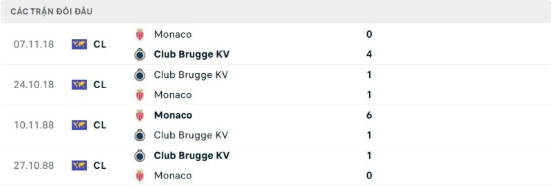 Thống kê phong độ gần đây Club Brugge vs Monaco