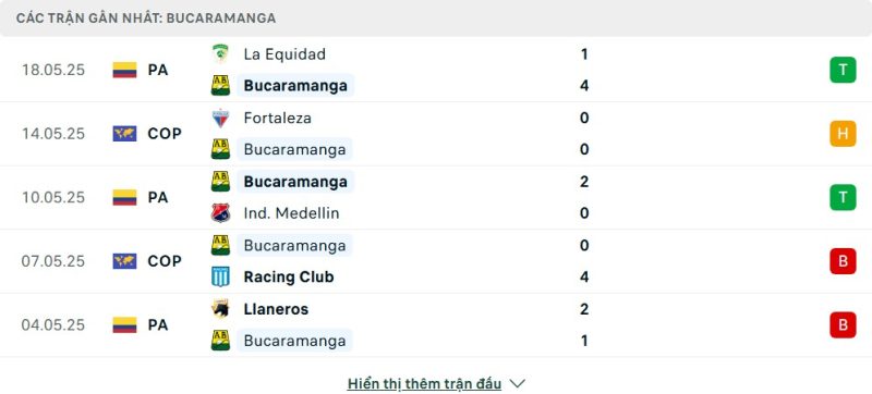 5 trận gần nhất của Atlético Bucaramanga: W-D-W-L-L
