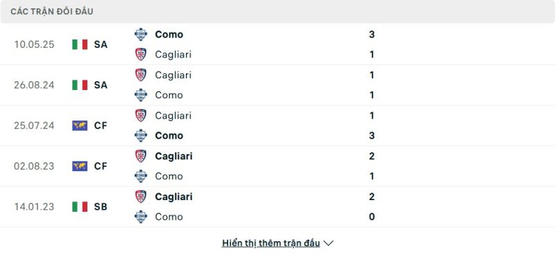 Bảng Tỷ lệ kèo bóng đá Como vs Cagliari