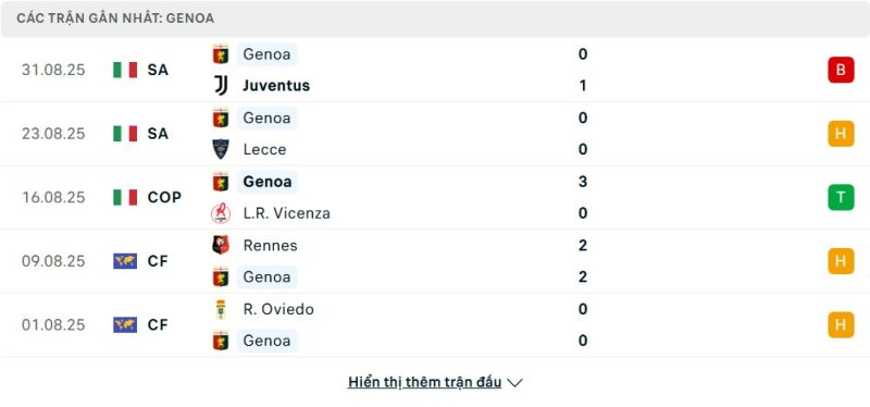 Bên kia chiến tuyến, Genoa đang có khởi đầu Serie A khá khó khăn, chỉ giành được 1 điểm sau hai lượt trận và đứng ở vị trí thứ 15 trên bảng xếp hạng. Sau trận hòa không bàn thắng với Lecce, đội bóng này nhận thất bại 0-1 trước Juventus ngay trên sân nhà. Tuy nhiên, trước đó tại Coppa Italia, Genoa đã thắng Vicenza với tỷ số đậm, cùng với các trận giao hữu thành công khi vượt qua Villarreal và Mantova. Dù vậy, sự thiếu hiệu quả trong tấn công ở Serie A cho thấy Genoa vẫn cần thêm thời gian để ổn định lối chơi và cải thiện phong độ.