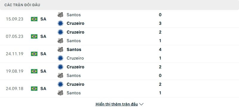 Thống kê phong độ gần đây Cruzeiro vs Santos