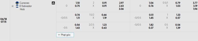 Bảng Tỷ lệ kèo bóng đá Curaçao vs El Salvador