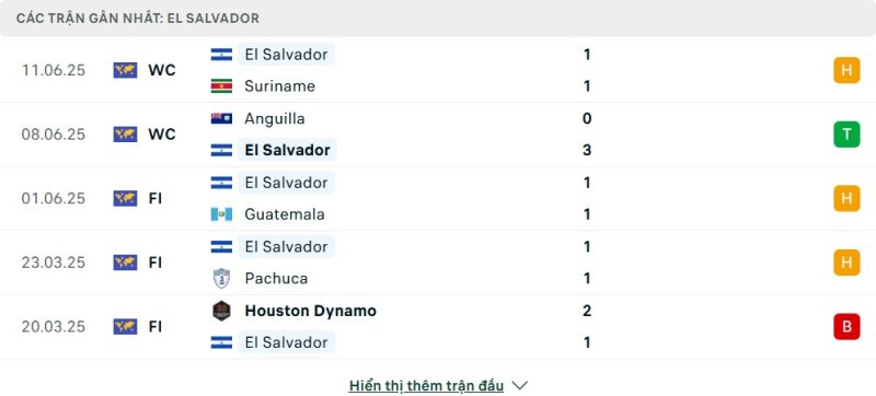 5 trận gần nhất của El Salvador: D-W-D-D-L