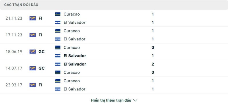 Trong 5 lần gặp nhau gần nhất giữa hai đội, Curaçao thắng 2, El Salvador thắng 1, còn lại là 2 trận hòa. Điều đáng chú ý là có đến 4/5 trận có ít nhất 2 bàn thắng được ghi, một thống kê cho thấy sự cởi mở mỗi khi hai đội đụng độ. Ngoài ra, hầu hết các trận đều có thế trận giằng co, không đội nào tỏ ra áp đảo quá mức. Điều này càng khiến trận đấu tới trở nên khó lường hơn.
