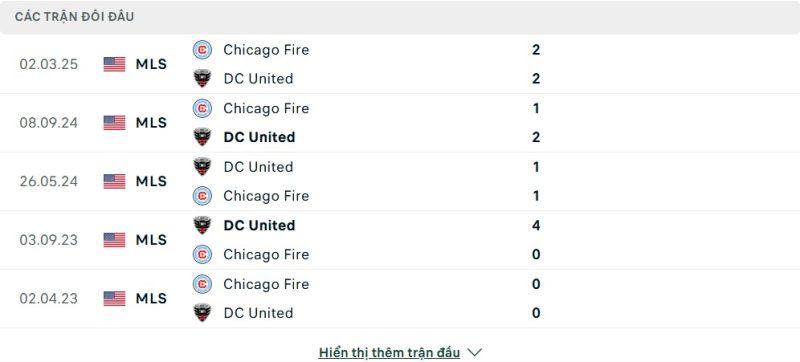 Hai lần gặp nhau gần nhất giữa DC United và Chicago Fire đều là những trận đấu nhiều bàn thắng, với tổng cộng trên 2 bàn mỗi trận. Điều này cho thấy đây là cặp đấu có xu hướng mở, cống hiến và ít toan tính. Lối chơi phóng khoáng của cả hai đội, cùng với sự yếu kém trong phòng ngự, là yếu tố góp phần tạo nên thế trận hấp dẫn. Điều này cho thấy các cuộc đối đầu giữa hai đội thường xuyên bùng nổ bàn thắng, và kịch bản tương tự rất có thể sẽ tái diễn.