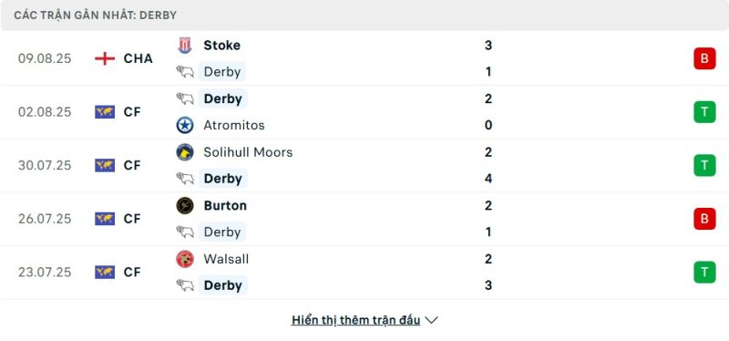 Derby County bước vào mùa giải mới với sự chuẩn bị tương đối tốt khi thắng RB Salzburg 2-1 và Walsall 3-2 ở loạt giao hữu. Họ cũng có chiến thắng 2-0 trước Atromitos ngay trước thềm Championship. Tuy nhiên, đội bóng này vẫn để thua Burton 1-2 và mới đây thất bại 1-3 trước Stoke ở vòng mở màn. Điều này cho thấy Derby vẫn cần cải thiện tính ổn định, đặc biệt là ở những thời điểm chịu áp lực lớn từ đối thủ.