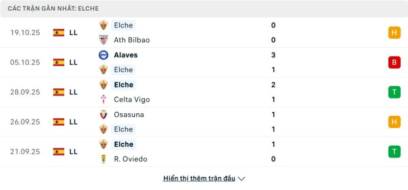 Bên kia chiến tuyến, Elche cũng đang chứng tỏ mình là một đối thủ không hề dễ bị bắt nạt ở mùa giải năm nay. Với 14 điểm có được, họ đang đứng ở vị trí thứ 7, ngay phía sau Espanyol. Phong độ của Elche cũng rất đáng nể với 3 chiến thắng, 5 trận hòa và chỉ duy nhất 1 thất bại. Điều này cho thấy họ là đội bóng có lối chơi cực kỳ khó chịu và rất khó bị đánh bại. Trận hòa 0-0 gần nhất trước Athletic Club là minh chứng cho sự kiên cường của họ.