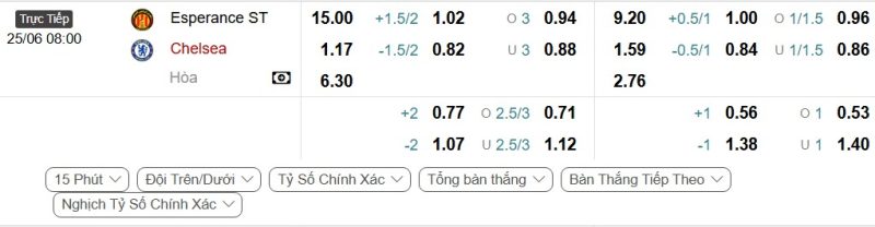 Bảng Tỷ lệ kèo bóng đá Espérance de Tunis vs Chelsea