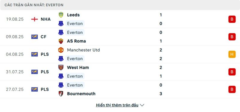 Everton đang có một khởi đầu mùa giải không thể tồi tệ hơn. Thất bại 0-1 trước Leeds United ở vòng đấu đầu tiên đã đẩy họ xuống vị trí thứ 14 trên bảng xếp hạng. Đây là kết quả đáng báo động, nối dài chuỗi thành tích bết bát của đội bóng từ giai đoạn giao hữu hè. Trong các trận đấu chuẩn bị cho mùa giải, Everton đã không thể hiện được nhiều điều, với những trận thua trước Roma, West Ham, Bournemouth và Blackburn. Áp lực đang đè nặng lên vai các cầu thủ và ban huấn luyện trước khi bước vào cuộc đối đầu khó khăn này.