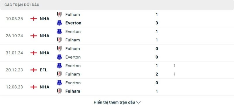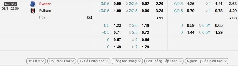 Bảng Tỷ lệ kèo bóng đá Everton vs Fulham
