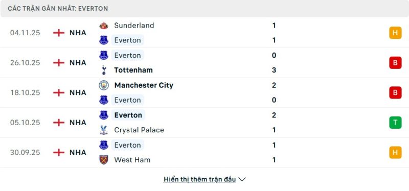 Everton đang trải qua một giai đoạn khởi đầu mùa giải không mấy ổn định tại Ngoại hạng Anh. Sau 10 vòng đấu, đội bóng của HLV David Moyes hiện đang đứng ở vị trí thứ 14 trên bảng xếp hạng với 12 điểm. Phong độ của họ gần đây khá thất thường, khi chỉ giành được một chiến thắng trong năm trận gần nhất tại giải đấu, bên cạnh hai trận hòa và hai thất bại. Những trận thua cách biệt trước Tottenham 0-3 và Man City 0-2 cho thấy “The Toffees” gặp nhiều khó khăn khi đối đầu với các đội bóng lớn. Họ cần một chiến thắng để cải thiện vị trí.