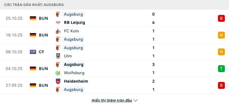 FC Augsburg đang trải qua giai đoạn đầu mùa giải 2025/26 đầy khó khăn. Sau 8 vòng đấu tại Bundesliga, đội chủ nhà mới chỉ giành được 7 điểm và đang đứng ở vị trí thứ 15 trên bảng xếp hạng, ngay sát nhóm nguy hiểm. Phong độ của họ gần đây rất đáng báo động. Trong 5 trận gần nhất, họ chỉ thắng 1, hòa 1 và phải nhận 3 thất bại. Đáng chú ý nhất là trận thua thảm bại 0-6 ngay trên sân nhà trước Leipzig ở vòng đấu trước. Trận hòa 1-1 với Köln là điểm sáng hiếm hoi của Augsburg trong chuỗi trận bết bát vừa qua.